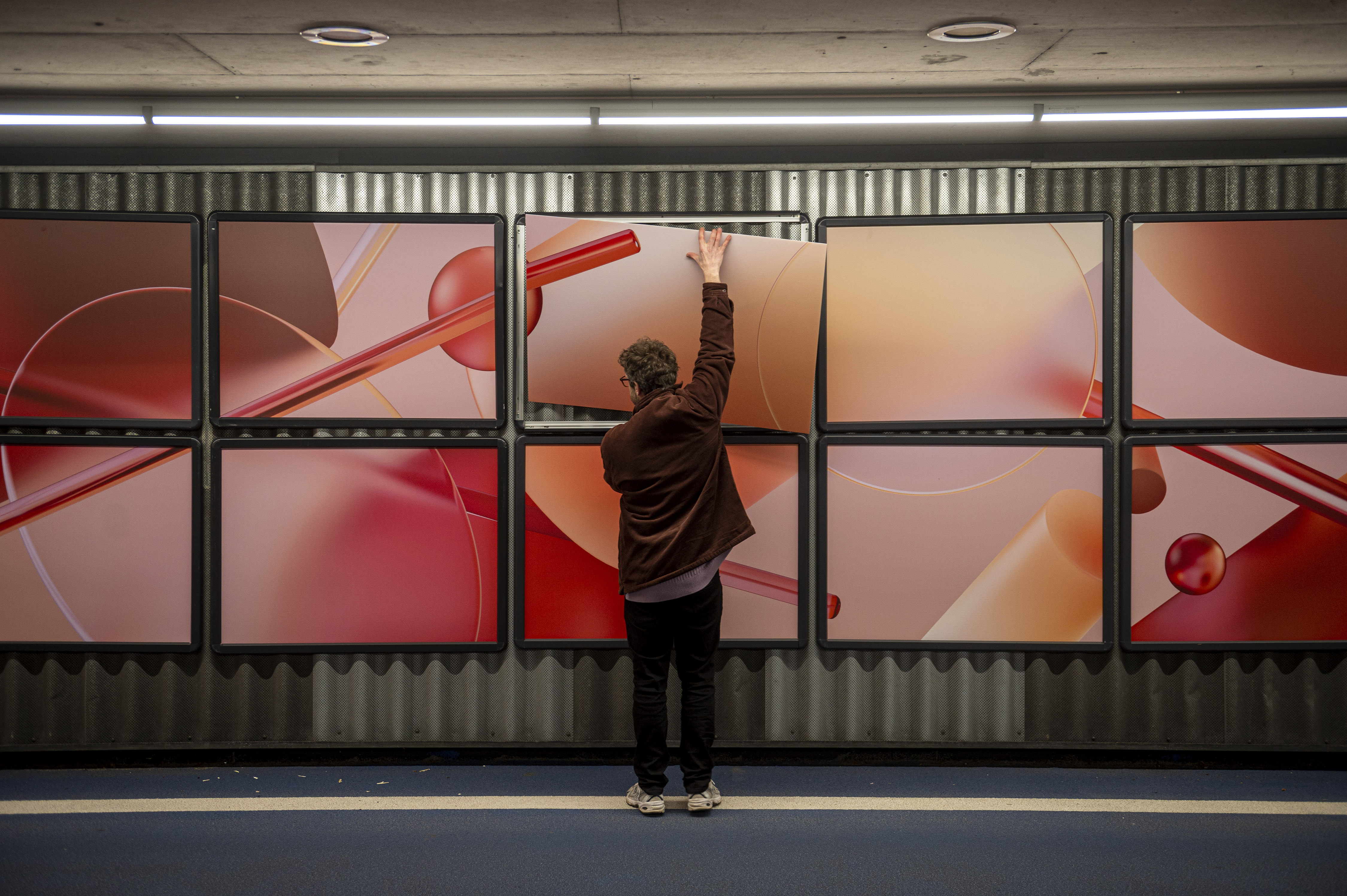 Waan je in de driedimensionale fantasiewereld van Rutger Paulusse. Als beeldend kunstenaar experimenteert hij met geometrische vormen, kleurovergangen, zachte texturen, ruimte en licht. In deze serie posters verbeeldt Rutger zijn vertrouwde digitale wereld.